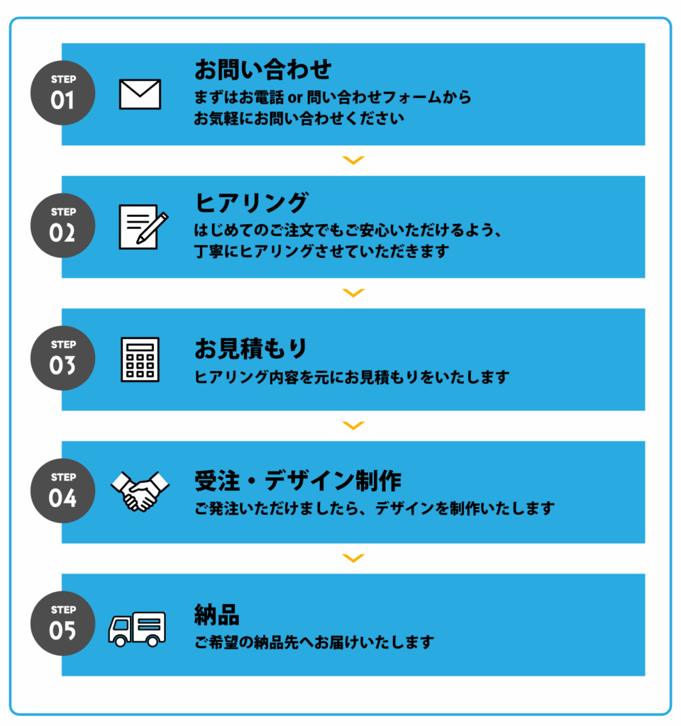 デザイン制作からご依頼いただく場合は納品まで3週間ほど頂戴いたしますが、お急ぎの場合はまずはご相談ください!